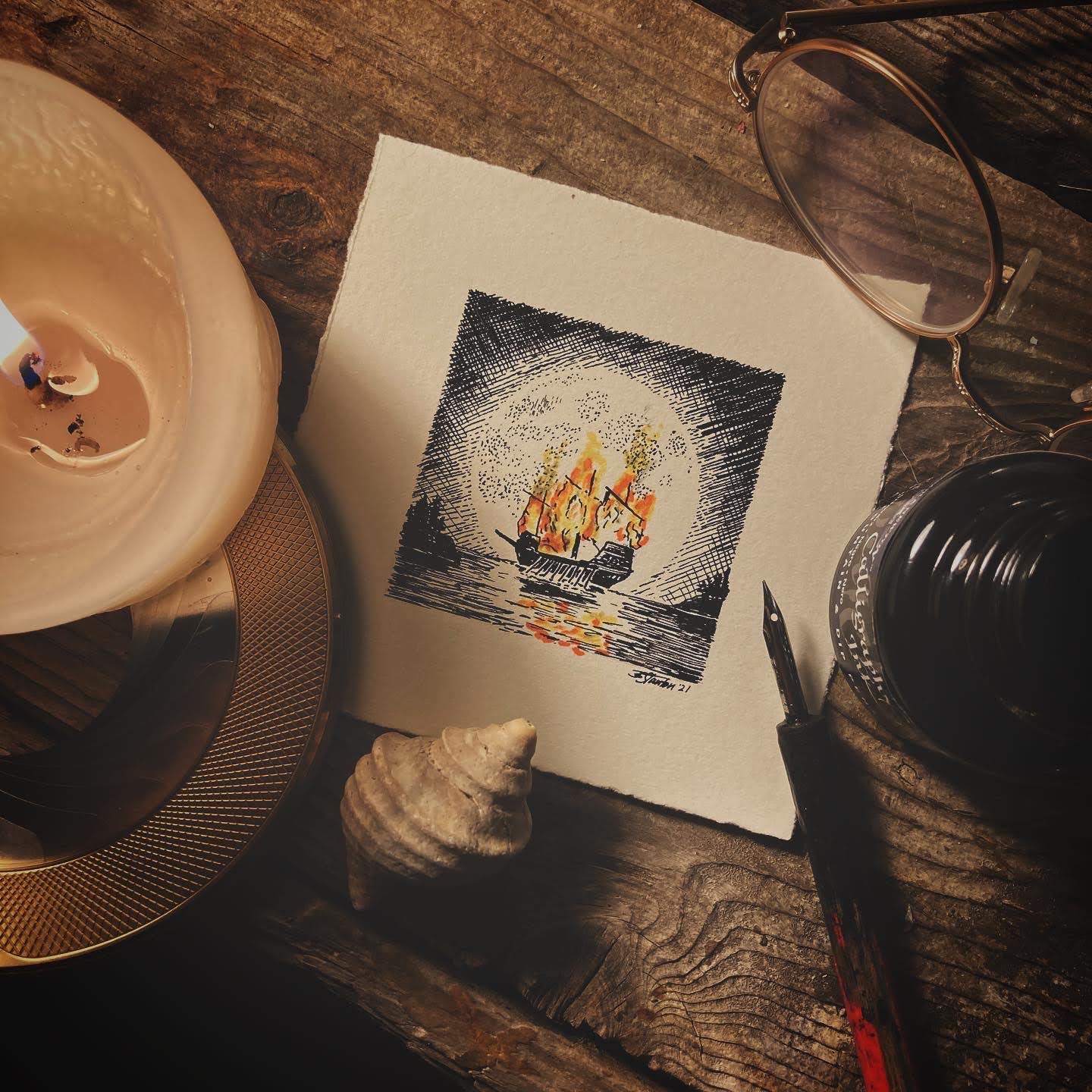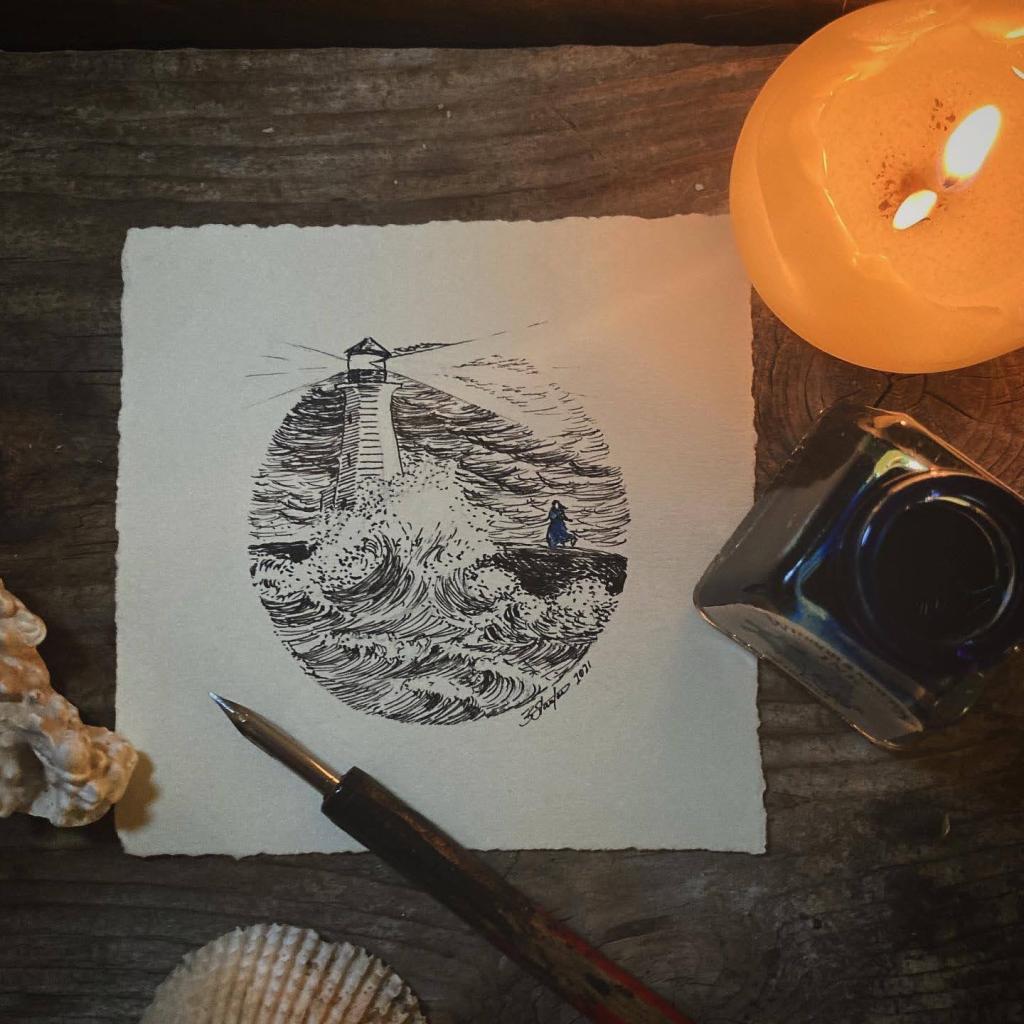 The book is a compilation of 24 pen and ink art works and accompanying stories of ghosts, hauntings, and other lore around Atlantic Canada. You may already be familiar with my yearly participation in ‘Inktober’, the month long drawing challenge every October. I’ve always been a fan of local lit and folklore and it struck me to use East Coast ghost stories for my prompts in 2021. They were a hit.